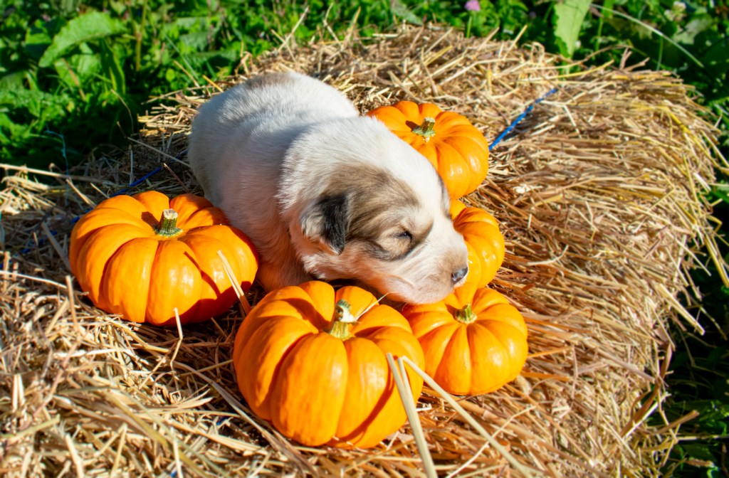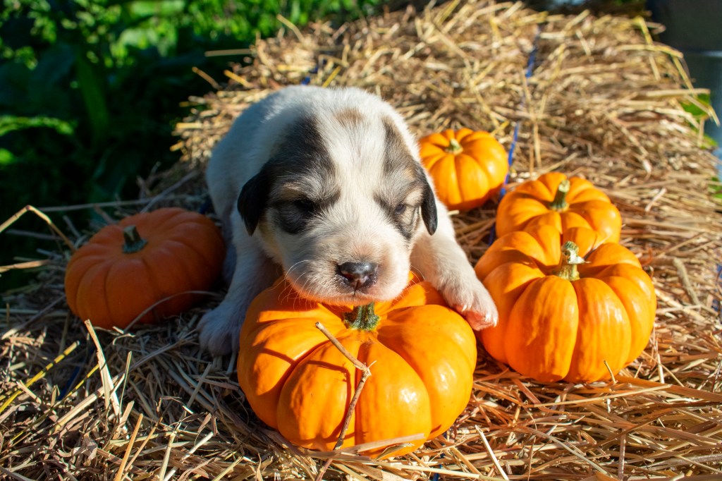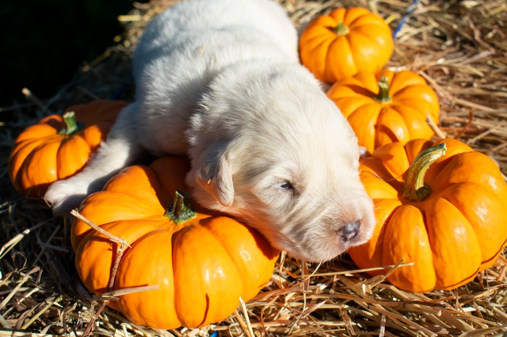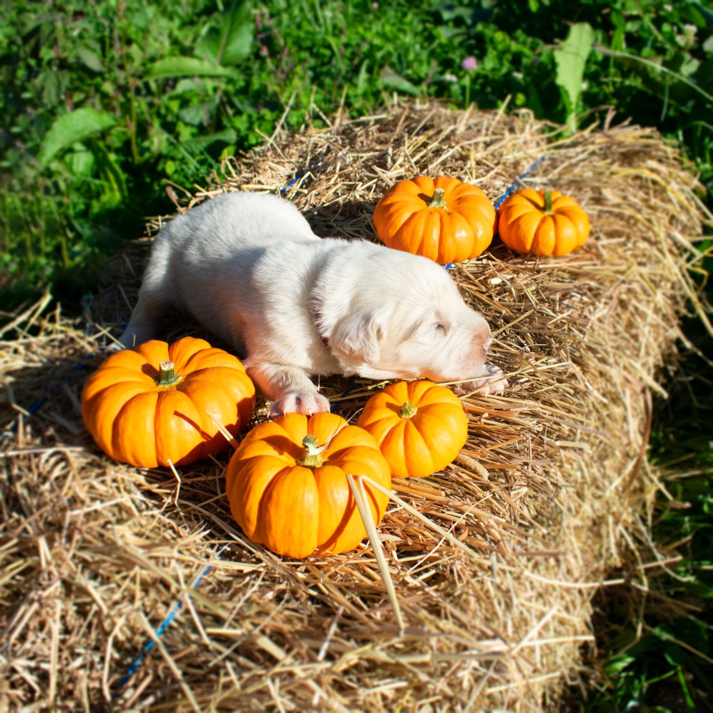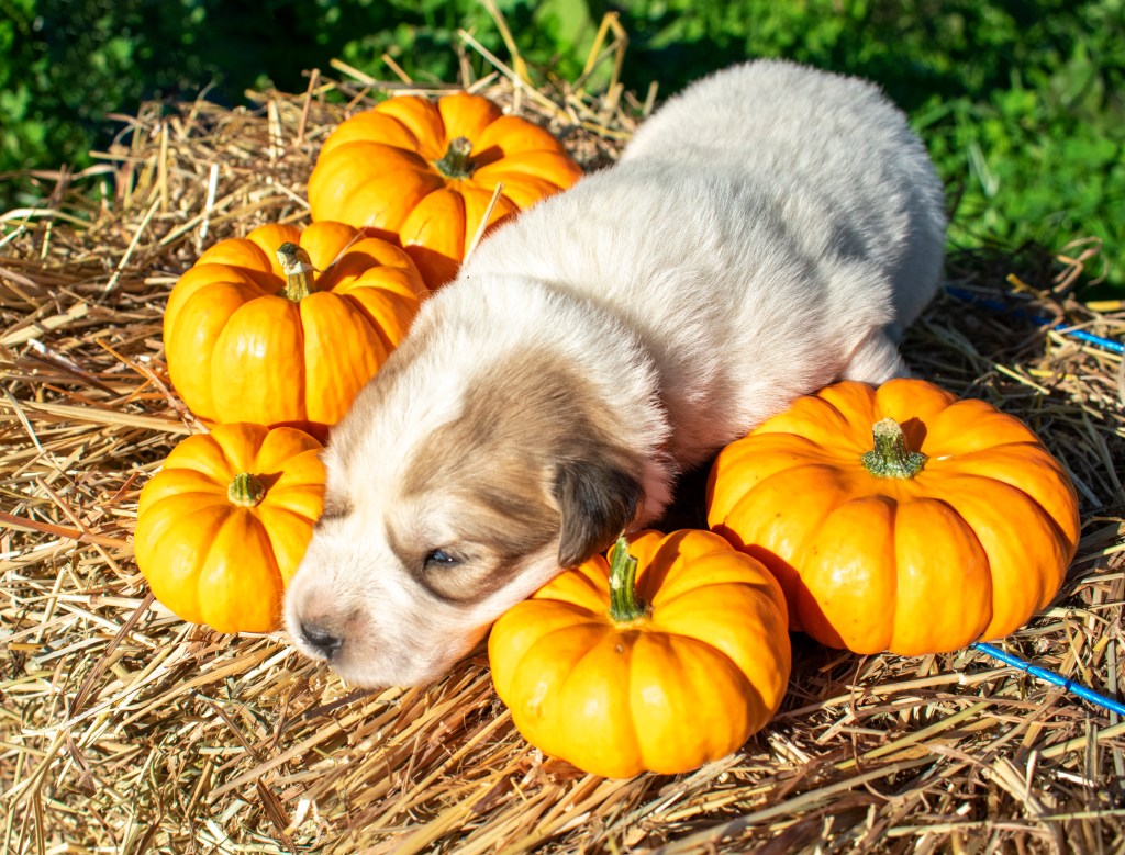 Nothing says adorable quite like a photoshoot involving puppies and mini pumpkins. Take a look at the photos below, we still have puppies available! If you’re interested in a puppy please head over to our LGD Puppies webpage to find an application.