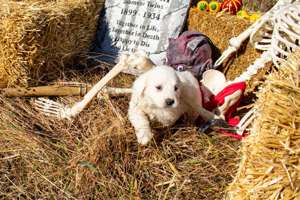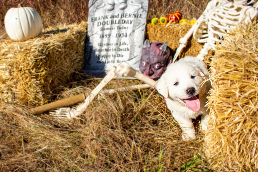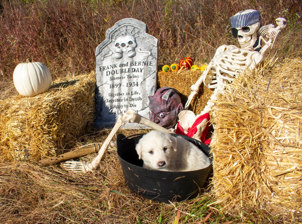 Check out the latest photos of the puppies from our Halloween photo shoot! They were really squirmy and didn’t always stay in the staging area but we managed to get a few good shots! We still have a few puppies available. As of 10/25/2020 Nimbus (m), Appa (m), Corazón (f), Santorini (f), and Bindi (f) are all still available. Head on over to our LGD Puppy page to submit an application and check out our FAQ. More photos will be coming soon!