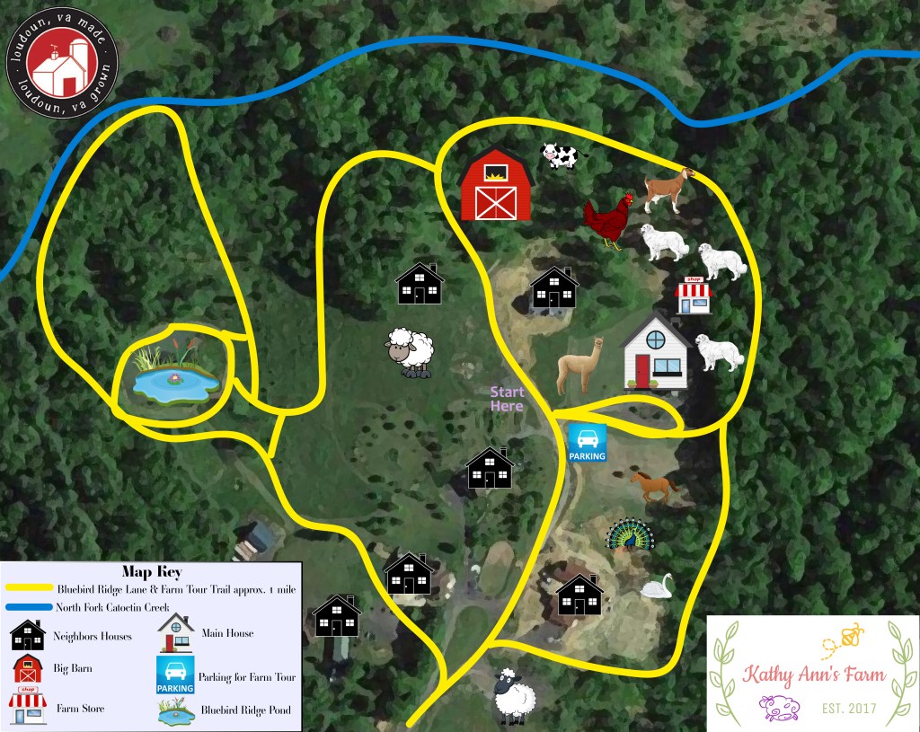 We have been eagerly preparing for the Loudoun Fall Farm Tour and we are so excited to have it in person! We cannot wait to see everyone. We will have many activities to do, including weaving on the loom, spinning using a drop spindle, seeing the animals, and more. We will also have a small scavenger hunt for the kids to get a small prize! Our shop has lots of wool and fiber for sale, as well as beginner spinning and needle-felting kits. Some of our LGD puppies will be around to say hi, weather permitting. We are opening the Bluebird Ridge Wildlife Trail to the public for the duration of the Loudoun Fall Farm Tour as well. Nature lovers can enjoy a short walk along the trail (approximately one mile full circle) and see both the wildlife and the farm life, side by side. We have sheep, goats, alpacas, a very pregnant cow, Great Pyrenees Livestock Guardian Dogs, a barn cat, lots of chickens, poultry, and waterfowl. We look forward to seeing you!