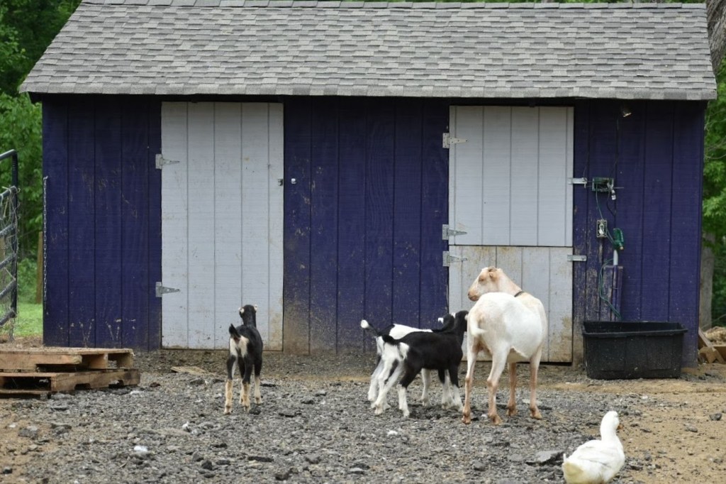 If you have a trustworthy older LGD you should still be cautious during the birthing process. Once the lambs and kids have been born if your LGD is trustworthy it is a good idea to introduce the newborns to your LGD. Mamas are likely to be protective and may butt their heads at your LGD, but it’s good for the dog(s) to know the newborns belong. Newborns are very vulnerable, and they are more likely to be targeted by local predators. Coyotes are the biggest threat where we are, but eagles have been documented stealing newborn lambs and flying off with them. And don’t forget local stray or neighbor dogs can be a threat too!