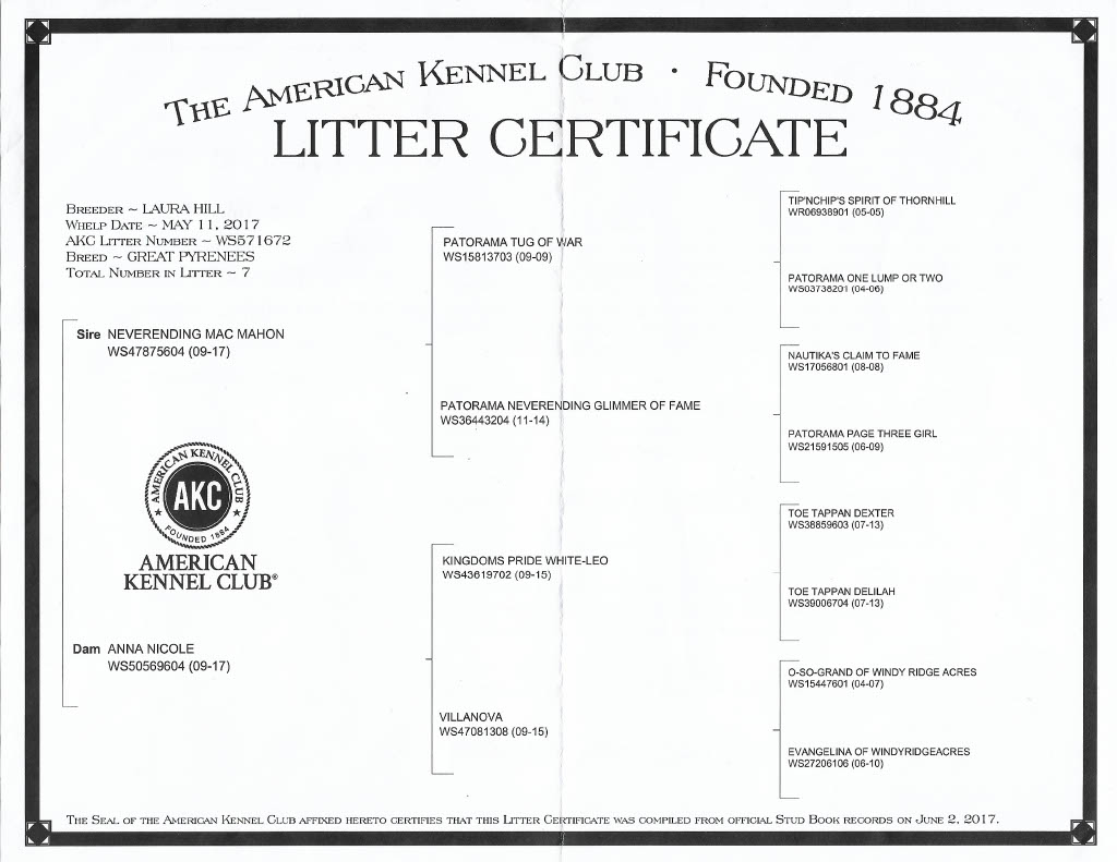 As of September 2023, Voltaire has sired six litters of puppies, with an average of 8 to 12 puppies per litter. With Voltaire you are getting a stud dog that has proven himself time and again. We are able to do live cover and chilled semen for artificial insemination at this point, but we are working on getting Voltaire collected and freezing some of his semen. The stud fee is $750 and comes with a guarantee. Contact for details.