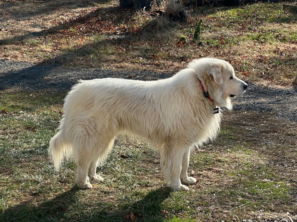 Voltaire has spent his life working as a Livestock Guardian Dog and the majority of his offspring went on to work as LGDs as well. Voltaire comes from a mix of conformation and working-line dogs that lived on and protected farms. Voltaire has strong guarding instincts, an unbreakable bond to family, and an excellent temperament.